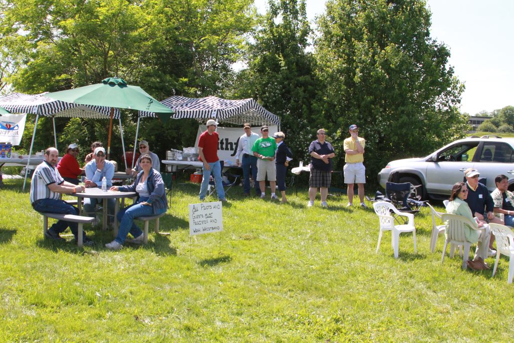 The party had already started. I thought the plan was to arrive around ten and help set up. Gary Shelby and crew obviously kicked butt and as Adam Zucker stated "Shelby is the FlyBQ version of the Seabees. This guy gets it built, set up and ready for business." He wasn't kidding. Mary and I carried our chairs in and picked a spot to enjoy the days activities. Yes, it was windy but the sun was out and there was so many people to catch up with. I believe the final numbers were somewhere around 30 aircraft and a total of 85 people. The FBO at Wings played a big part moving picnic tables and equipment along with donating prizes and offering a fuel discount.